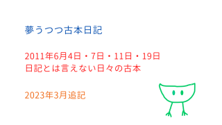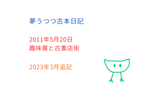 【2011年7月15日】朝、咳が止まらず身体がだるい。先月あたりからぐずぐずと長引いていた夏風邪がようやく治まりかけたと思っていたら、反対にこじらせちまったようだ。熱、8度3分。神保町行きは取りやめる。趣味展の当日にこじらせるとは日頃の鍛錬...